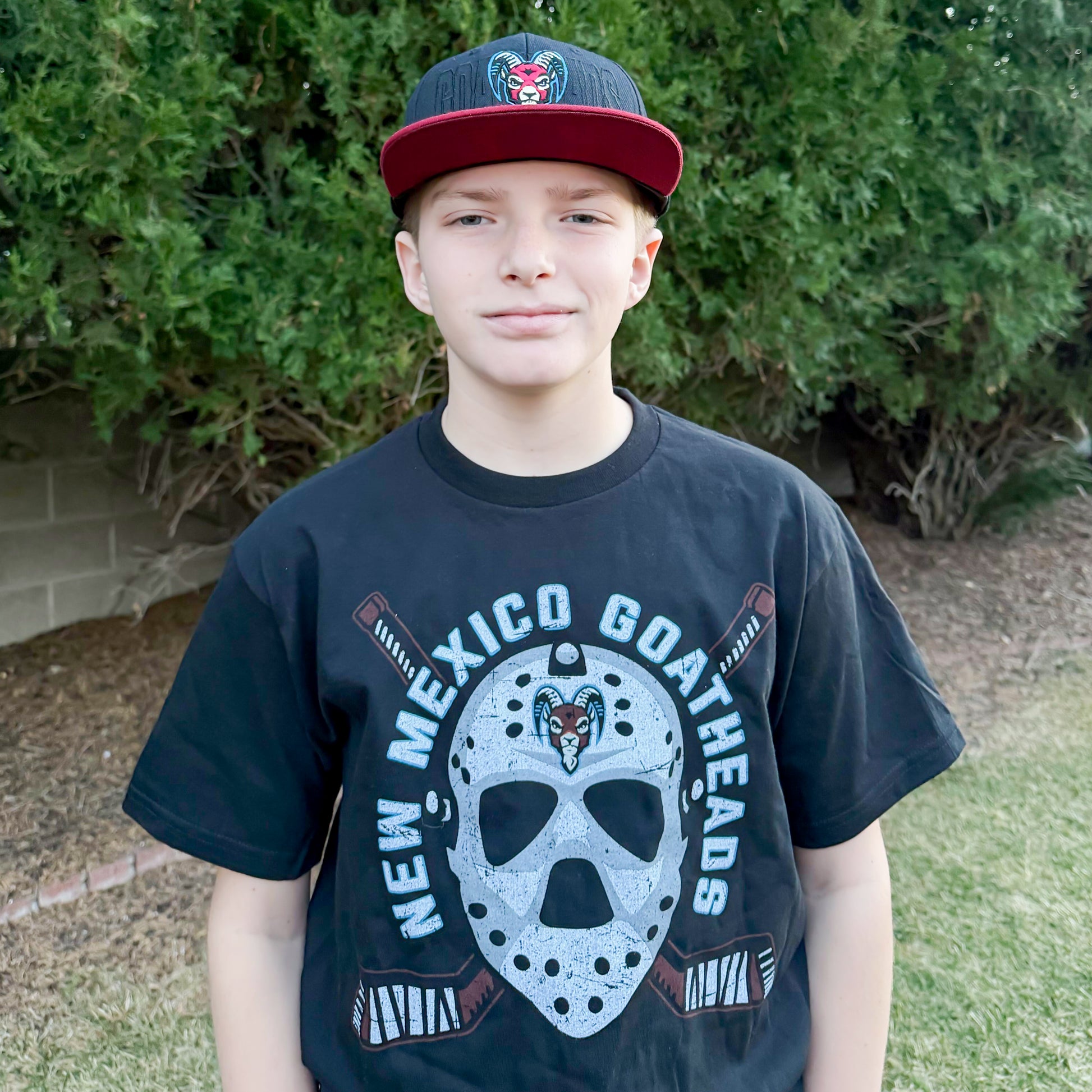 This flatbill hat features the New Mexico Goatheads primary ram logo embroidered front and center, paired with a black crown and cardinal flat brim for a sharp, modern look. A tonal “GOATHEADS” wordmark is stitched across the front panel for added depth, making this hat stand out without being loud.